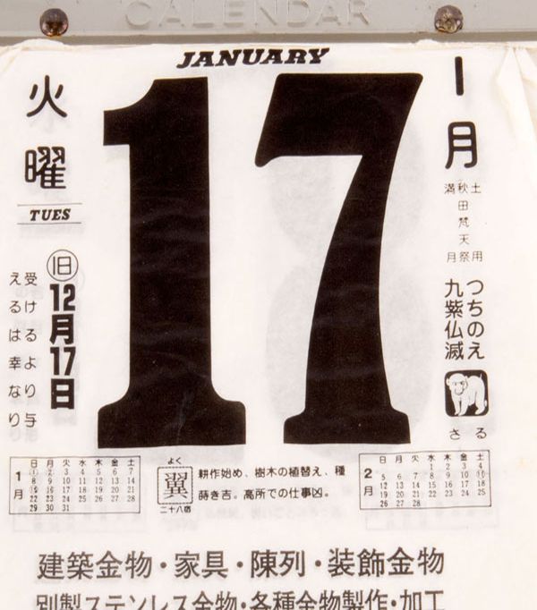 On Jan.17,1995, it stopped at the time of the earthquake on the wall of a house.