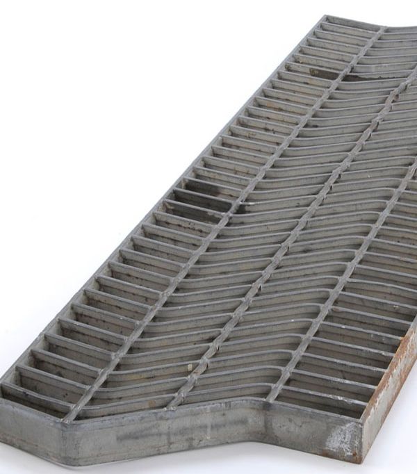 The violent shake of the earthquake distorted the heavy iron gutter cover.
