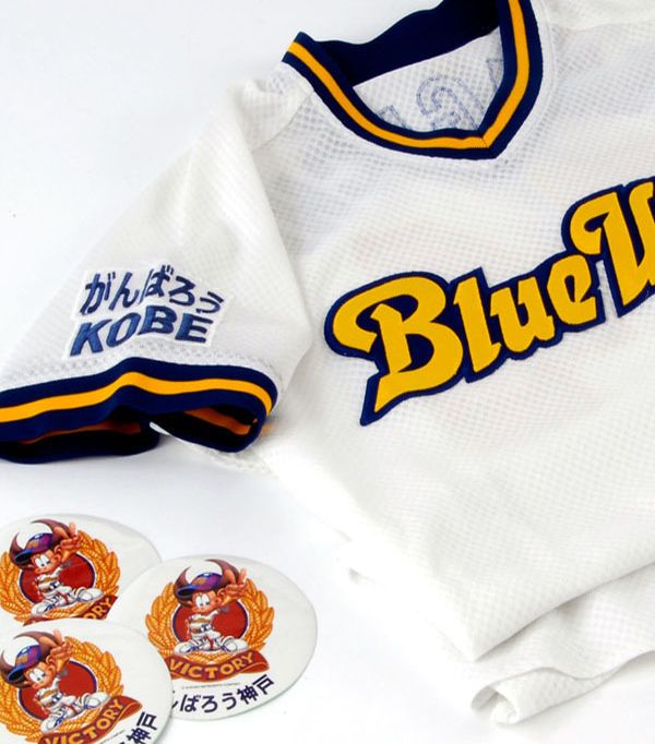 Ganbarou, Kobe! (Let's do our best, Kobe!) This slogan of the team expressed a wish for reconstruction and encouragement, and it was used everywhere throughout the country, not only in the disaster-stricken Kobe. It became one of the top popular words of the year in 1995. A professional baseball team "Orix Blue Wave"(now Orix Buffaloes) with its base in Kobe printed its slogan on their uniforms and played games encouraged by the enthusiastic cheers of Kobe citizens. It won the pennant of the league for the first time as "Orix" that year. Also in 1996, it won the champion of Japan and became a big encouragement for Kobe which was in the process of recovery. This uniform was donated by Mr. Takashi Yamaguchi (His number was 74 at the time).